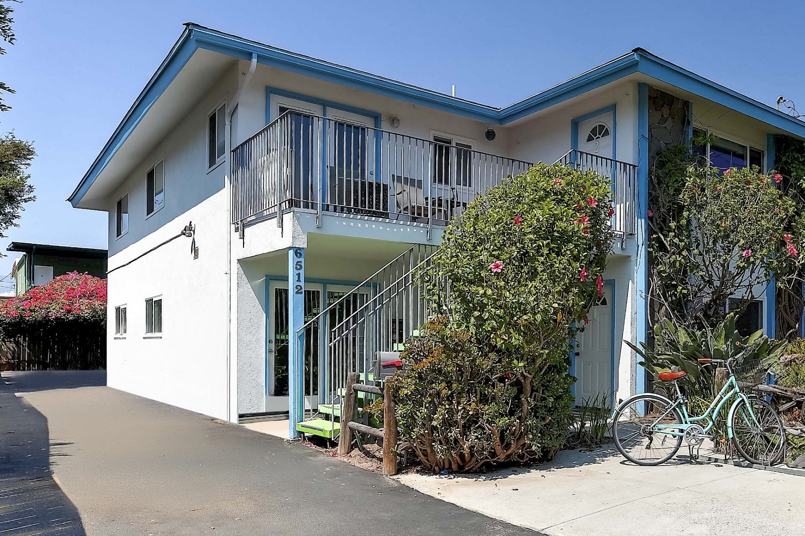 A paved and spacious driveway is on the back side of the property for off street parking! A necessity if you choose to live on Del Playa as street parking is very difficult to secure.
