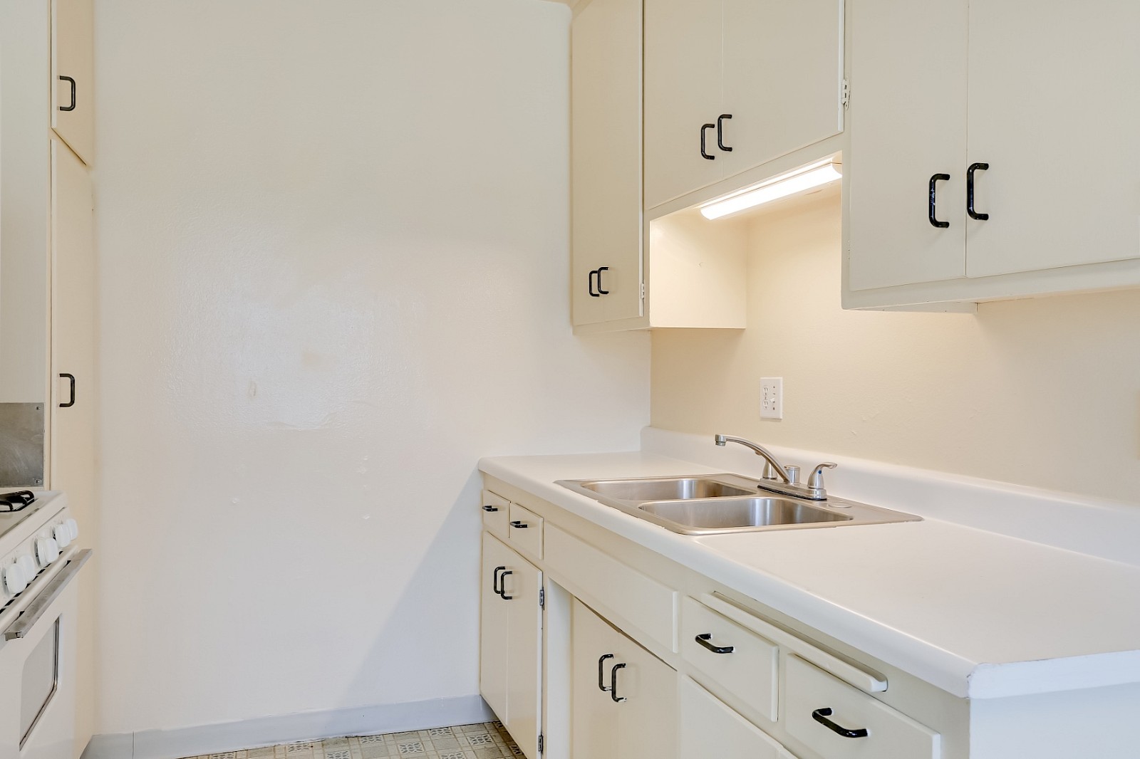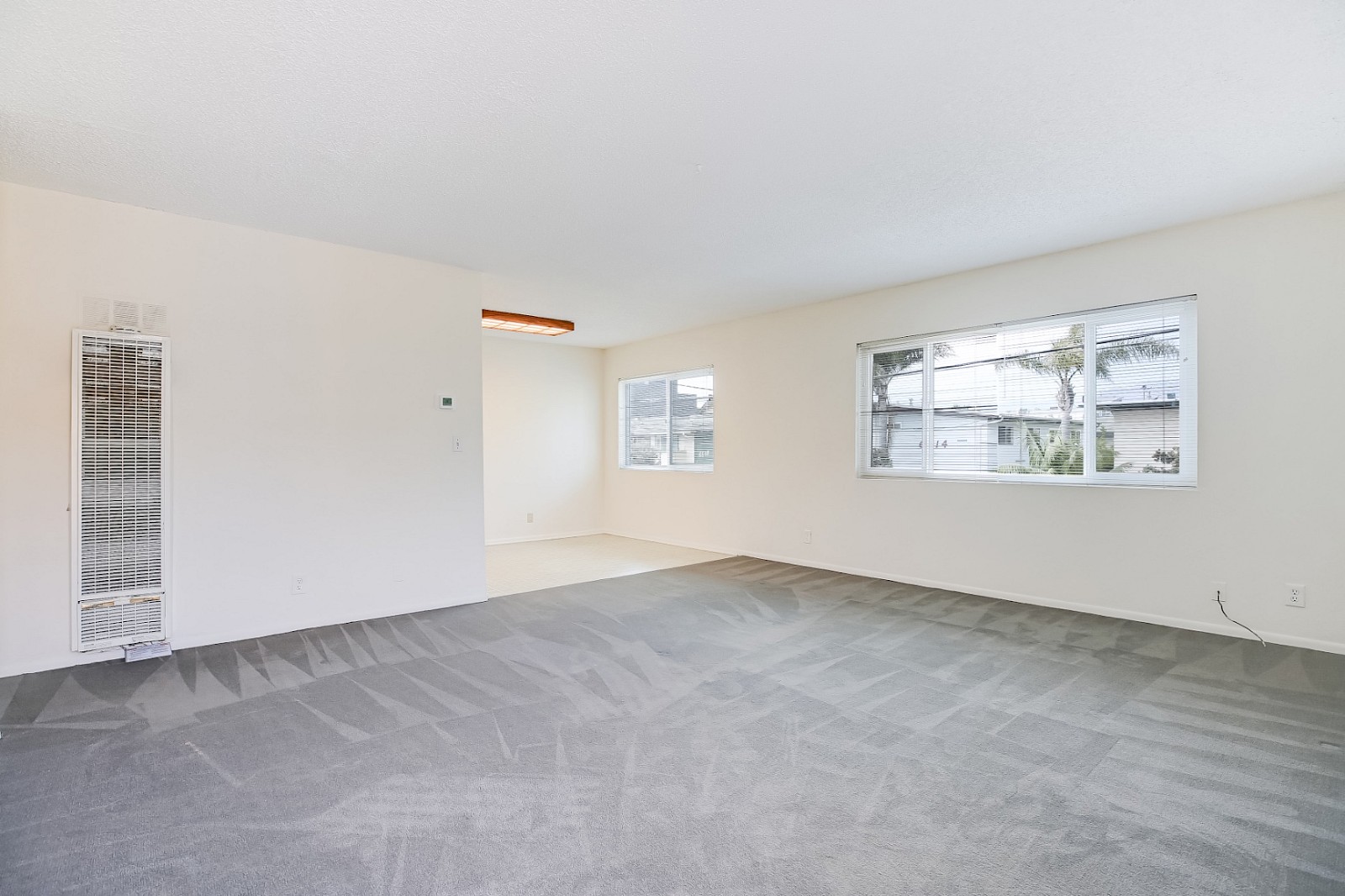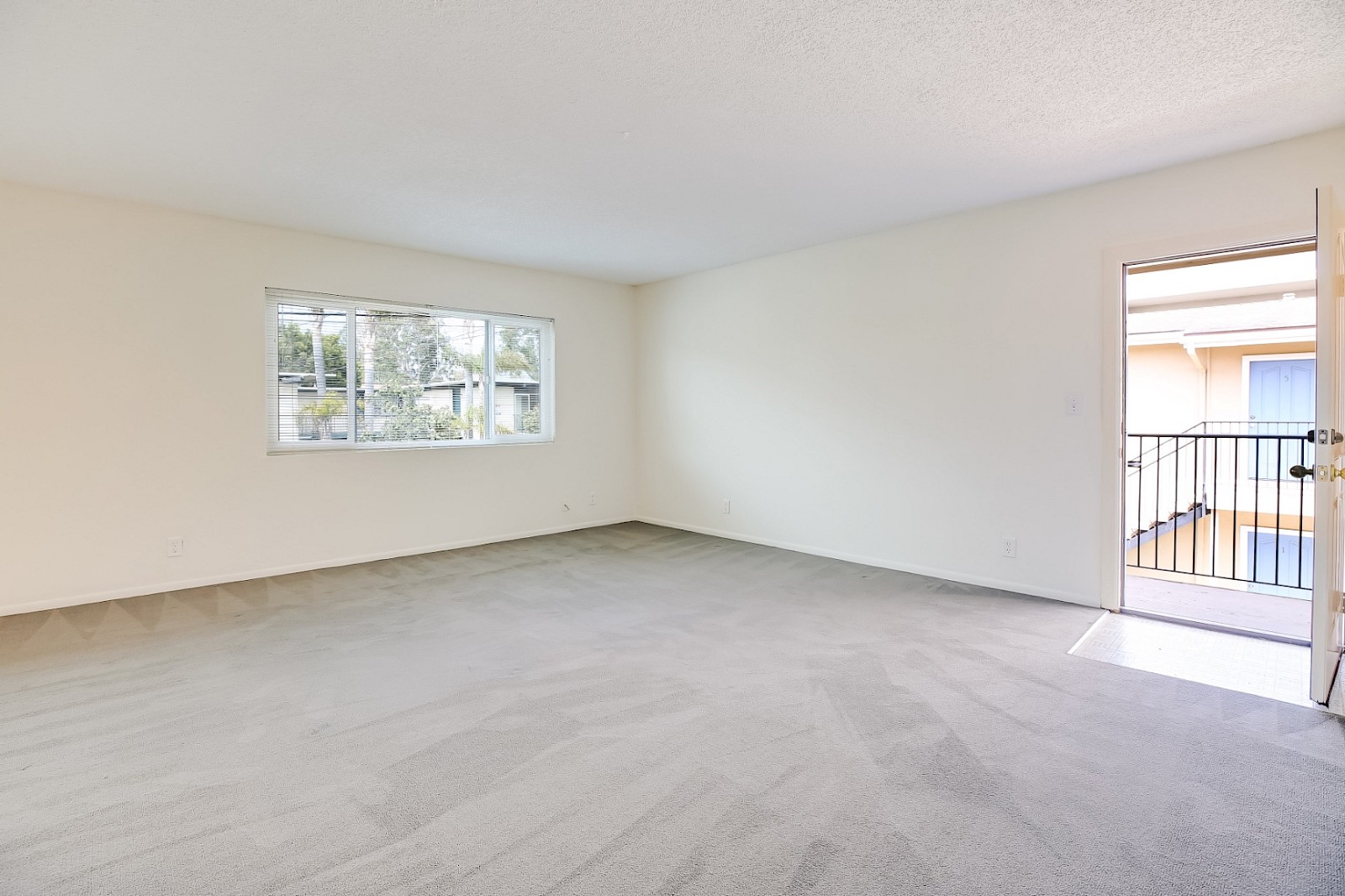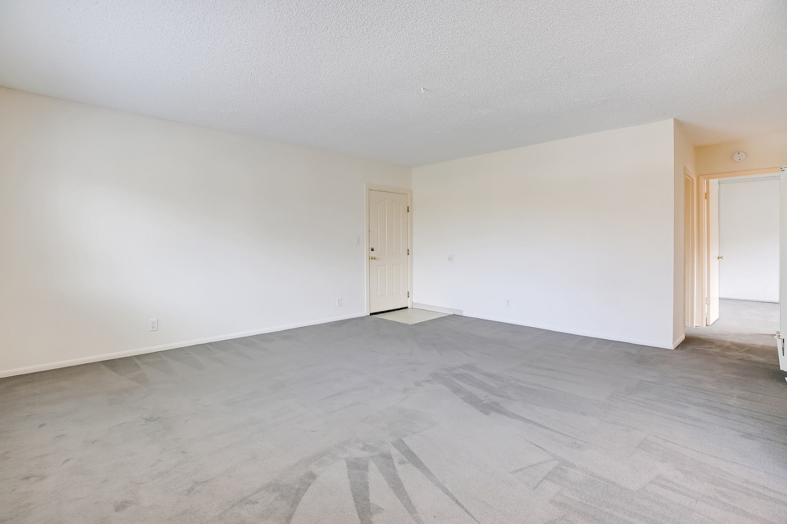 The large living space is bright and airy, and leads to a separate, full kitchen includes that cabinets with ample storage space, garbage disposal, gas range, and refrigerator.