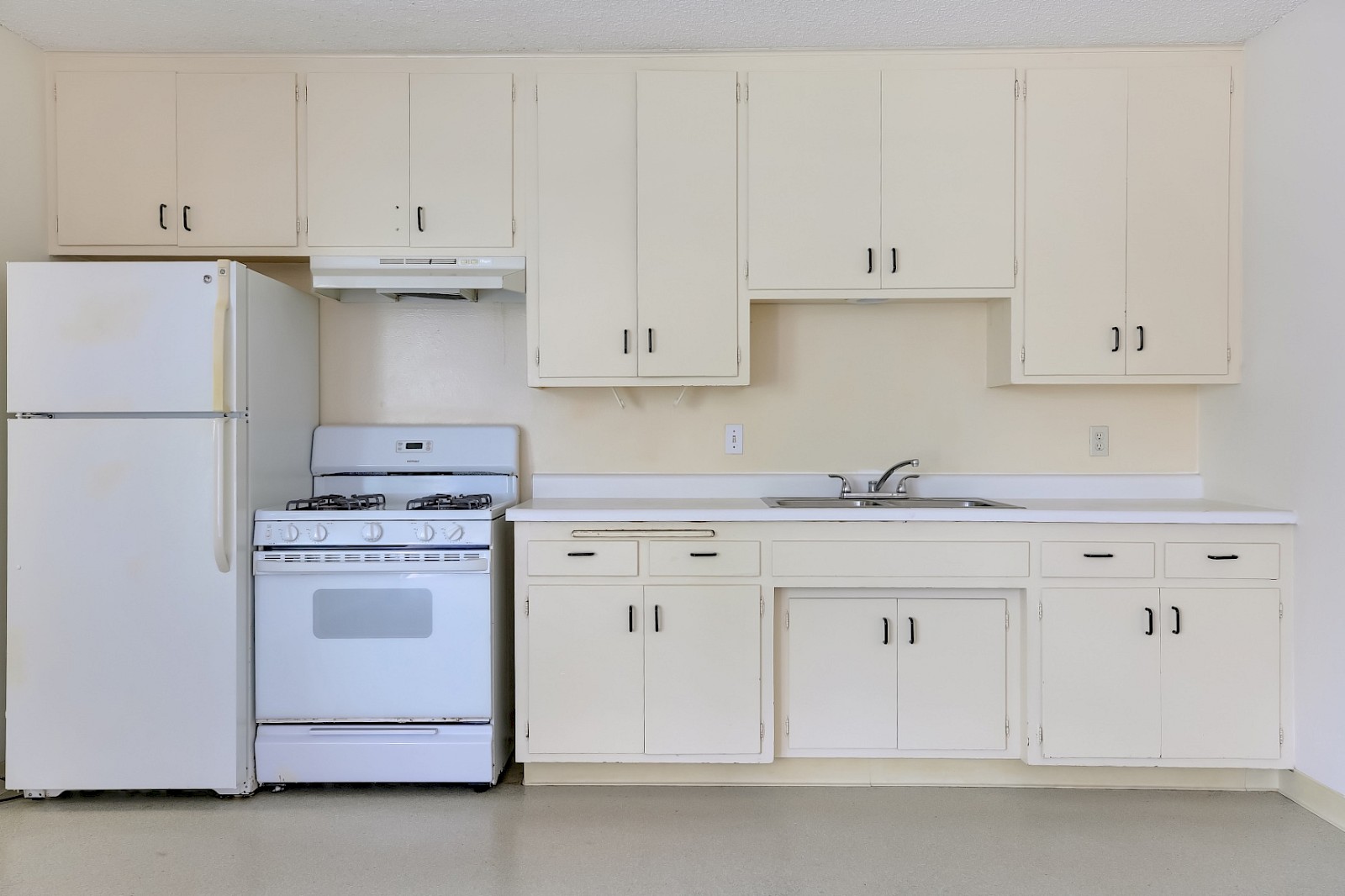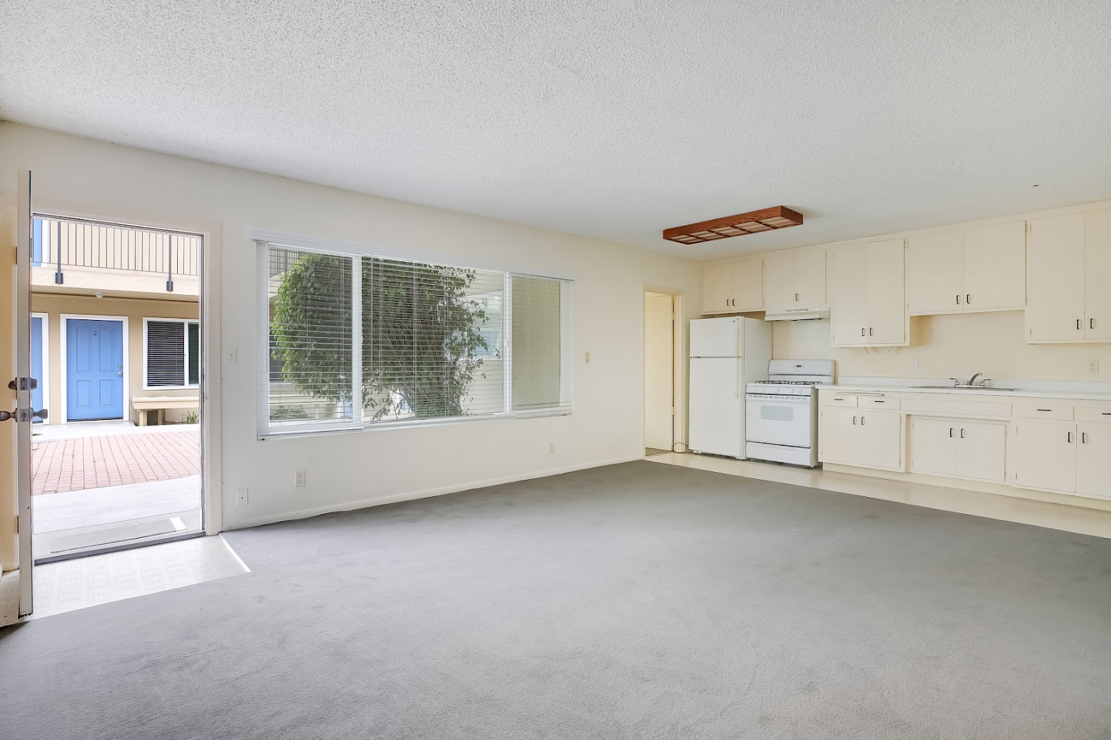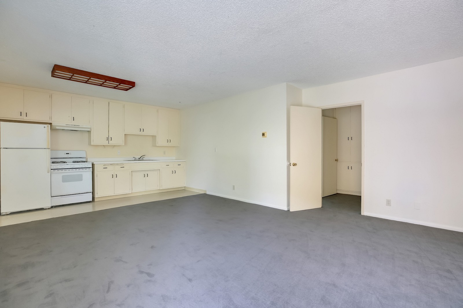 The living room is spacious, and leads to a separate, full kitchen includes that cabinets with ample storage space, sink with garbage disposal, gas range, and refrigerator. Plenty of space for 3 tenants!