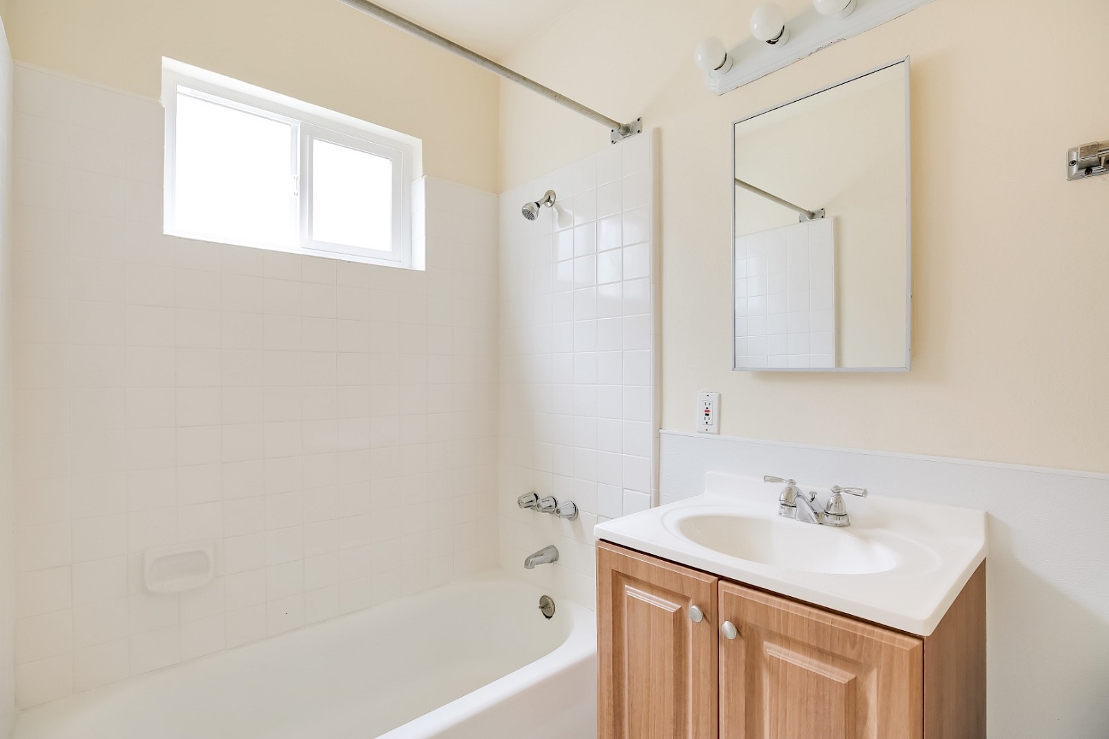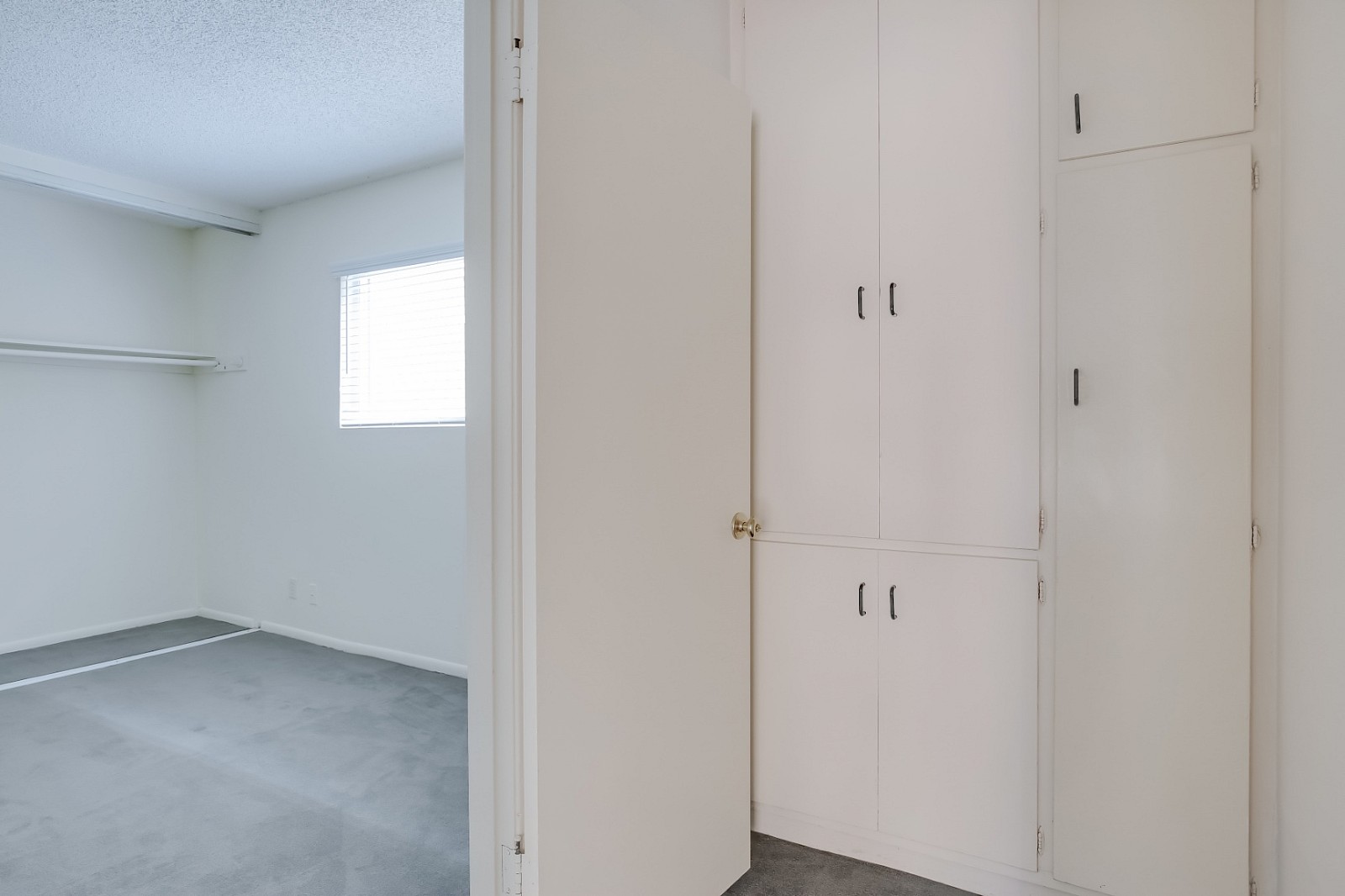 Linen cabinets in hallway provide great storage space. Bathroom features shower/bathtub.