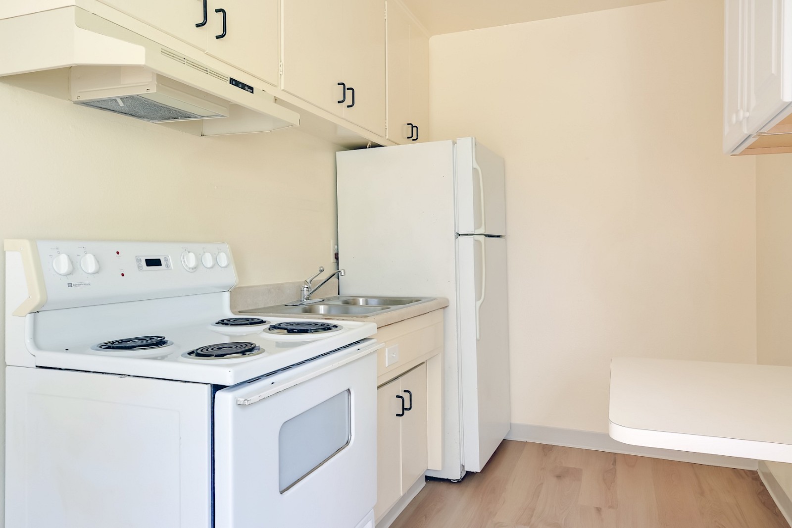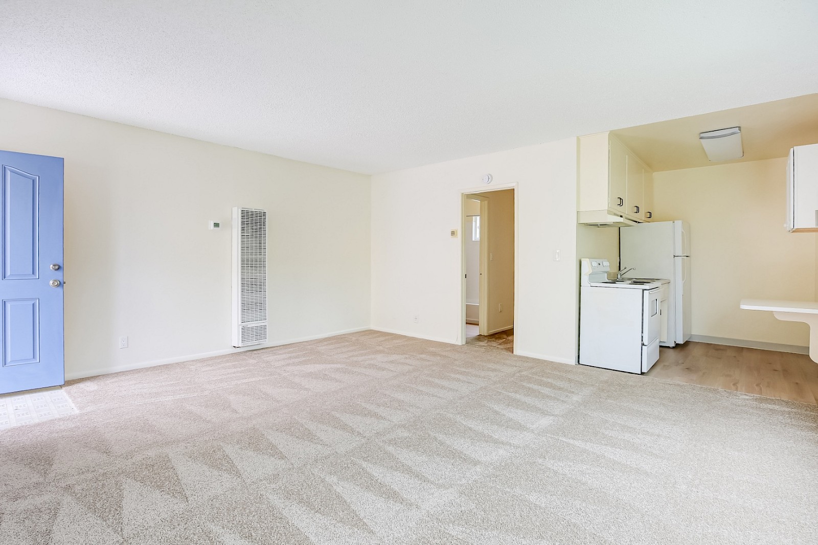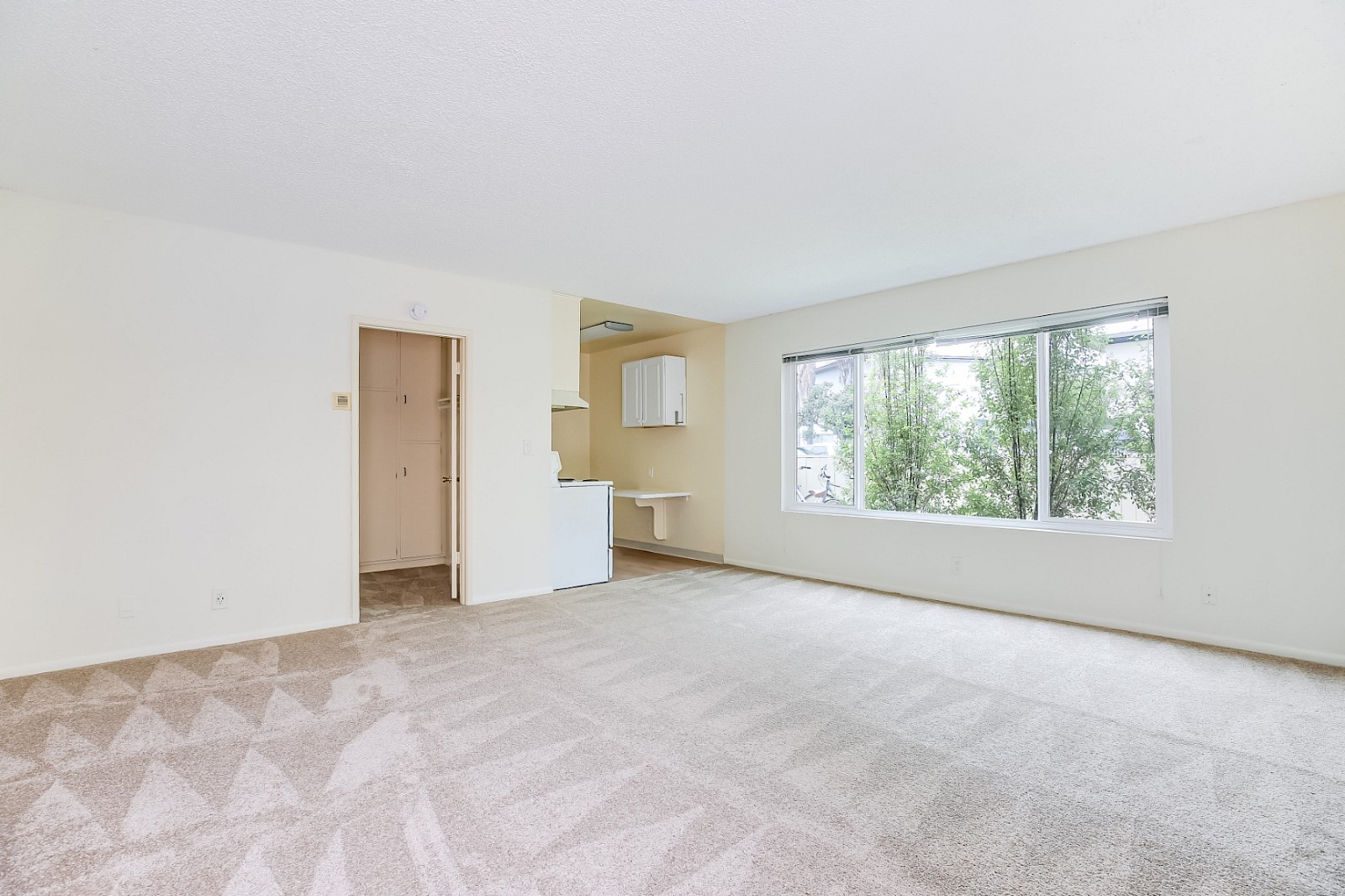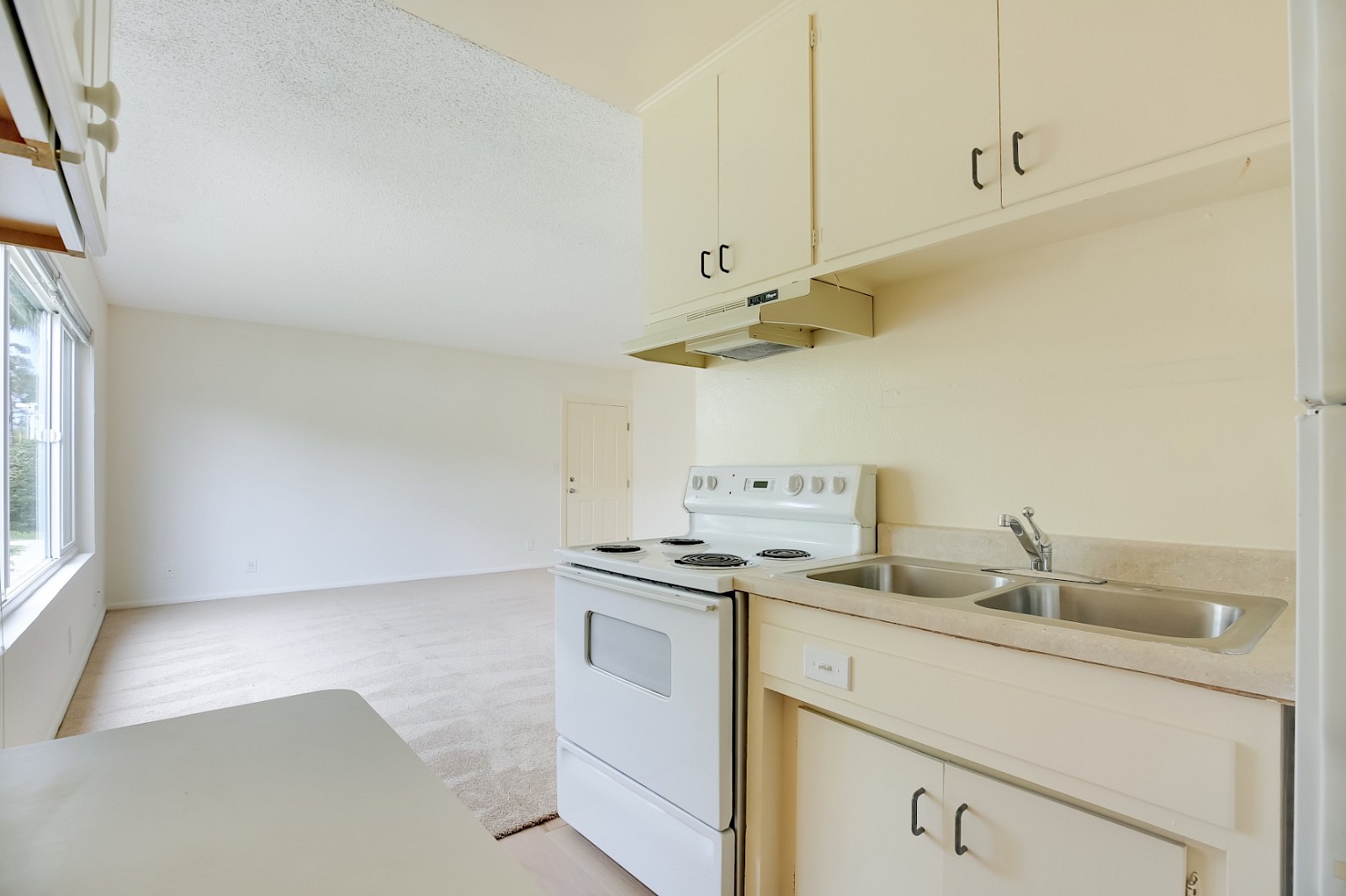 The large living space is bright and airy, and leads to a separate, full kitchen includes that cabinets with ample storage space, a large single basin sink with garbage disposal, electric range, and refrigerator. Great for one tenant who likes their privacy but spacious enough for 2!