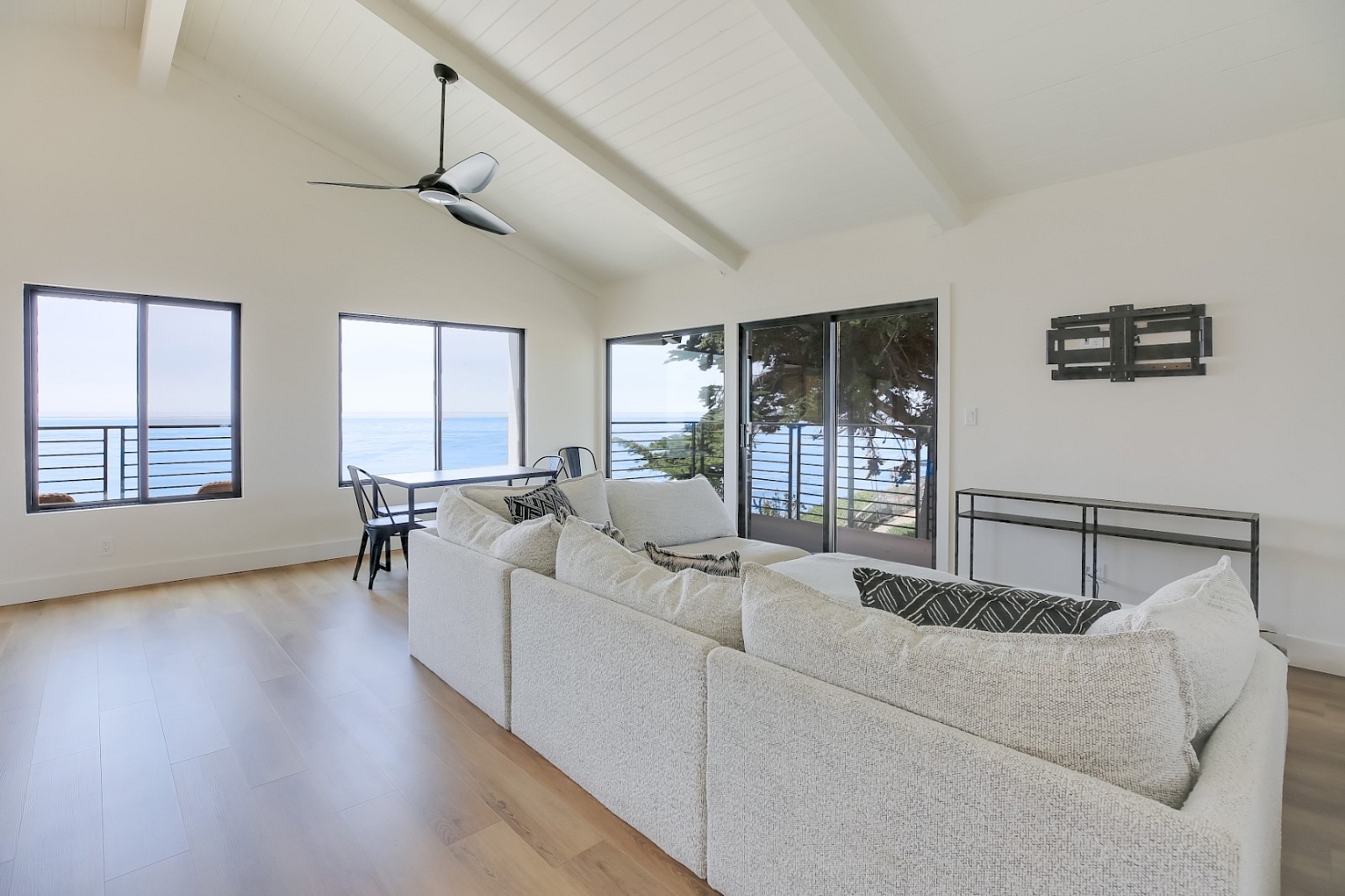 6697 Del Playa is a 2 story - 4 bedroom 2 bathroom house. This newly rennovated house features a expansive front deck large windows that provide AMAZING ocean views, light and ocean breeze. The view over looks the park, beach, and ocean.