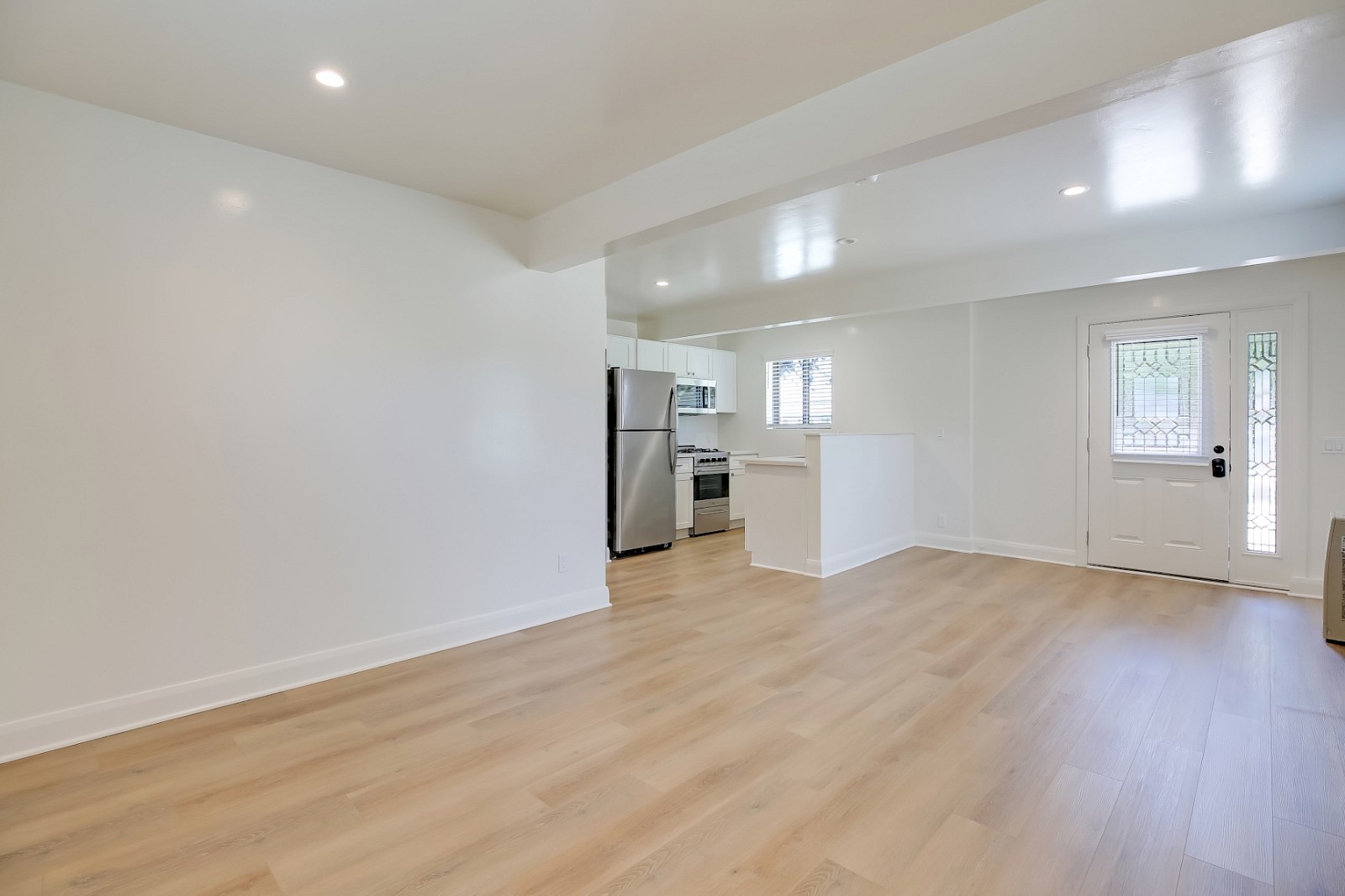 Large living space is easily separated with furniture into a living room and bedroom, or 2 bedrooms.