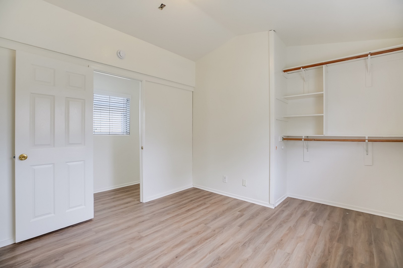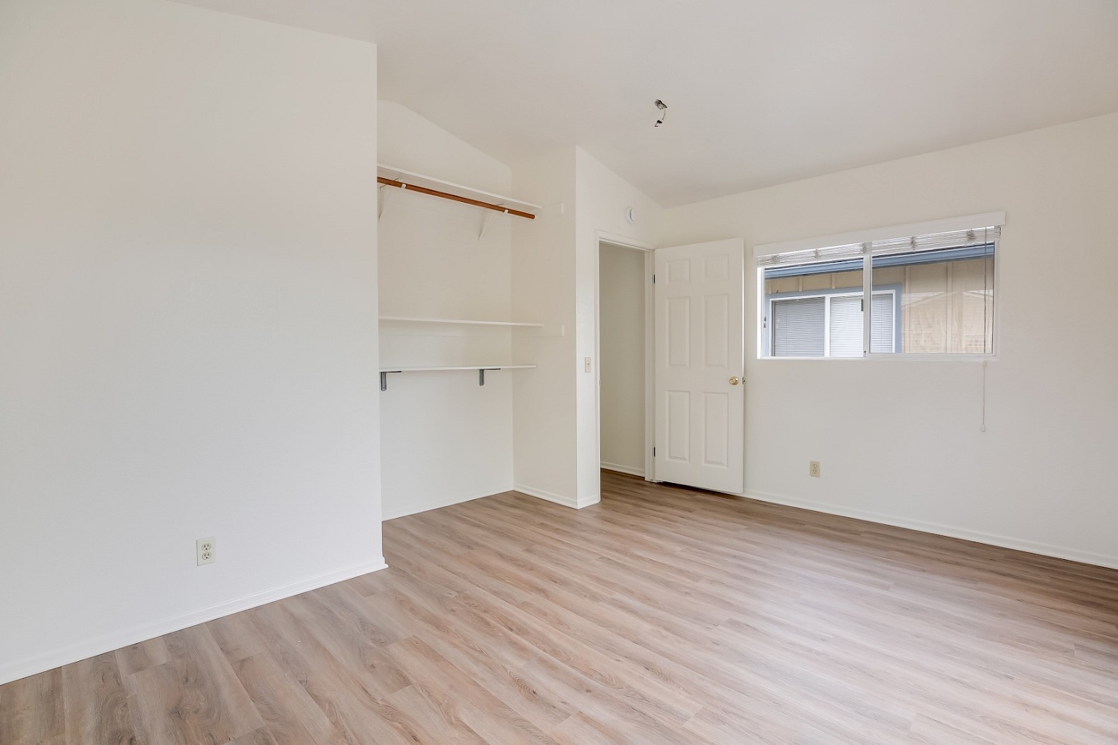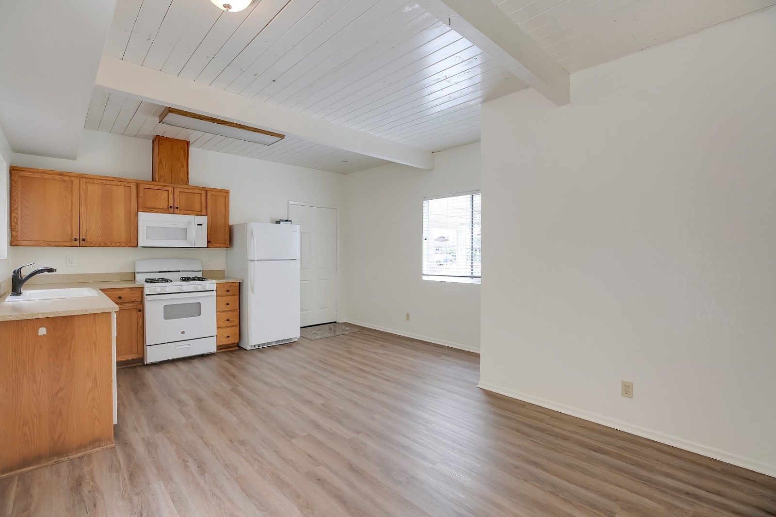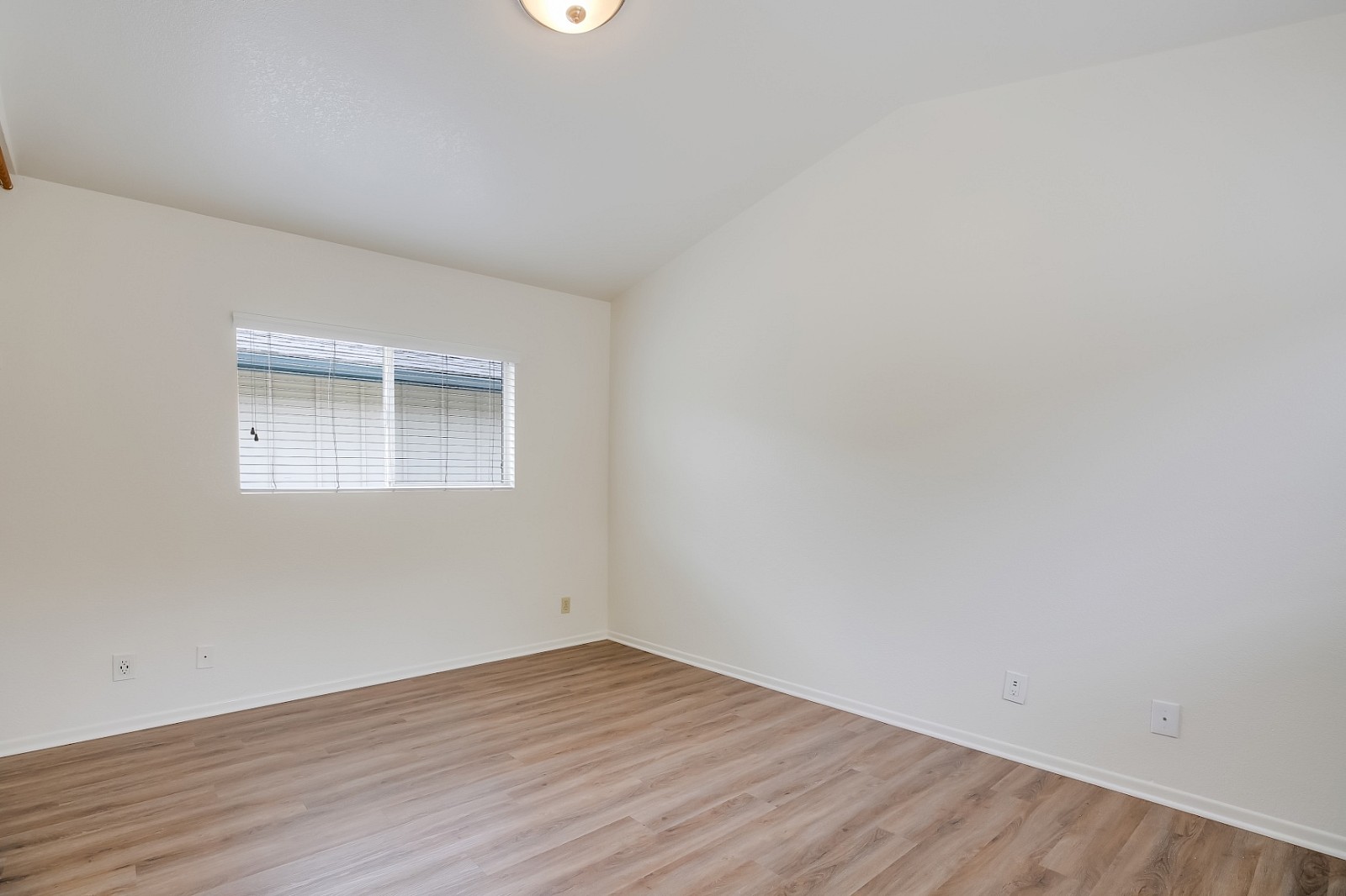 The large bedrooms boast ample closet space. The downstairs has a large living room that opens to a side yard, and connects to the kitchen. . The kitchen includes a dishwasher, refridgerator, microwave, and gas range.