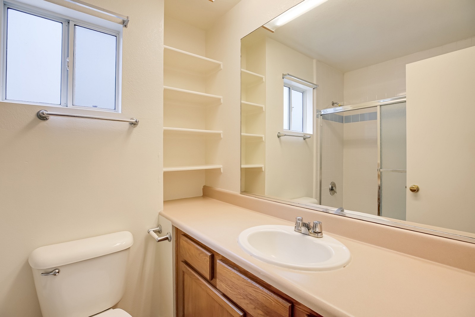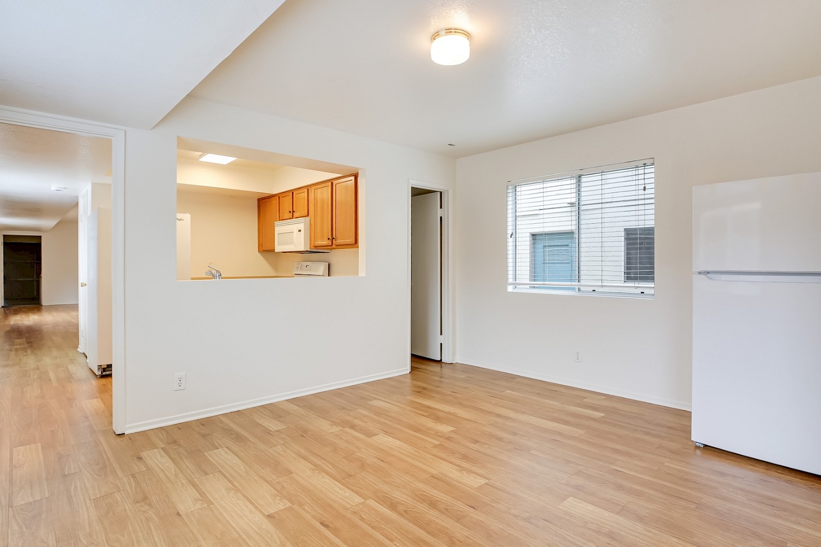 The living room is spacious, and the dining room is connected to the kitchen with a bar countertop, creating a great space for hangouts. The kitchen also has a pantry! Key for 9 residents all sharing a kitchen. It also features 2 refrigerators, a dishwasher, range, and a garbage disposal.