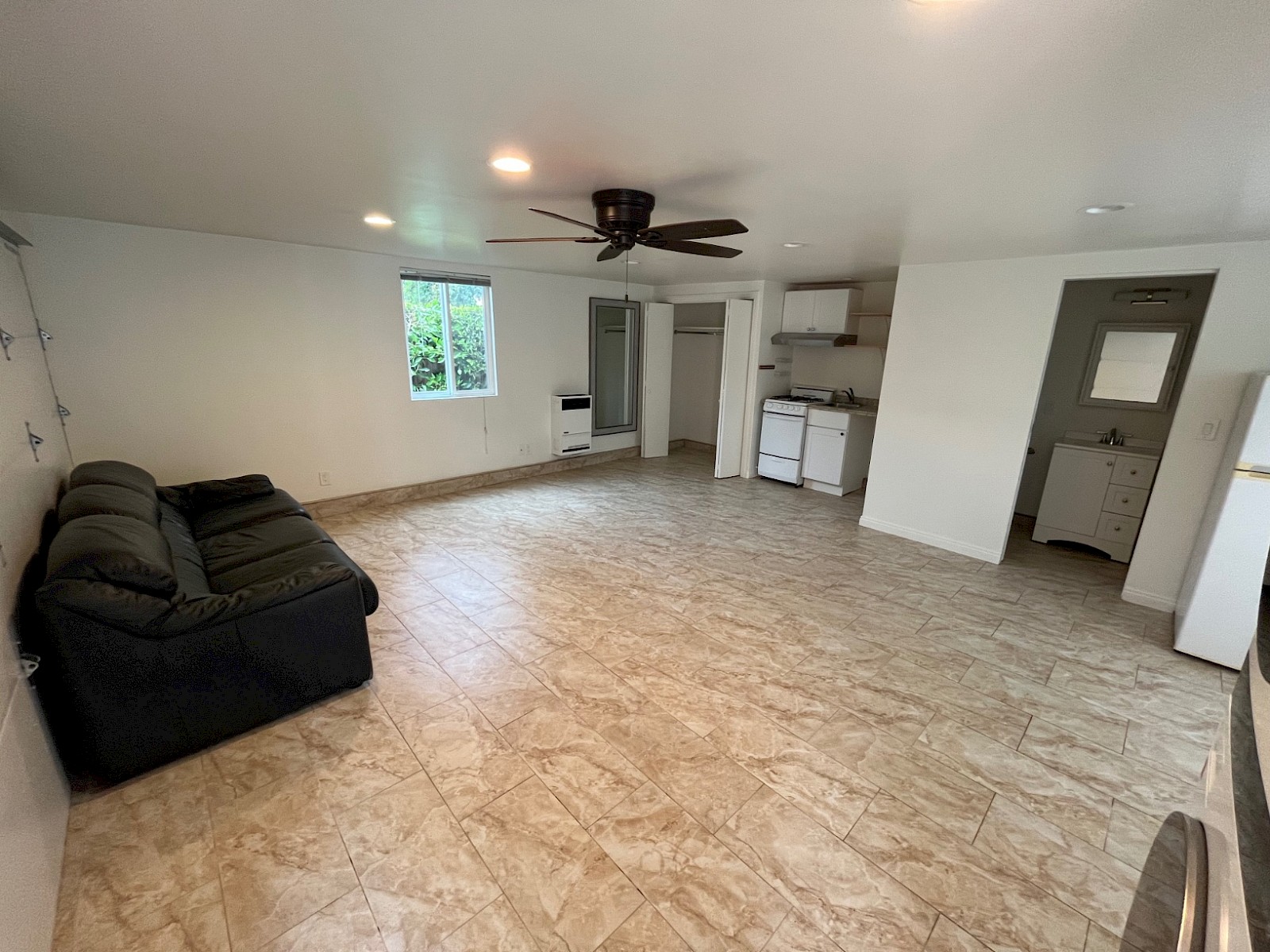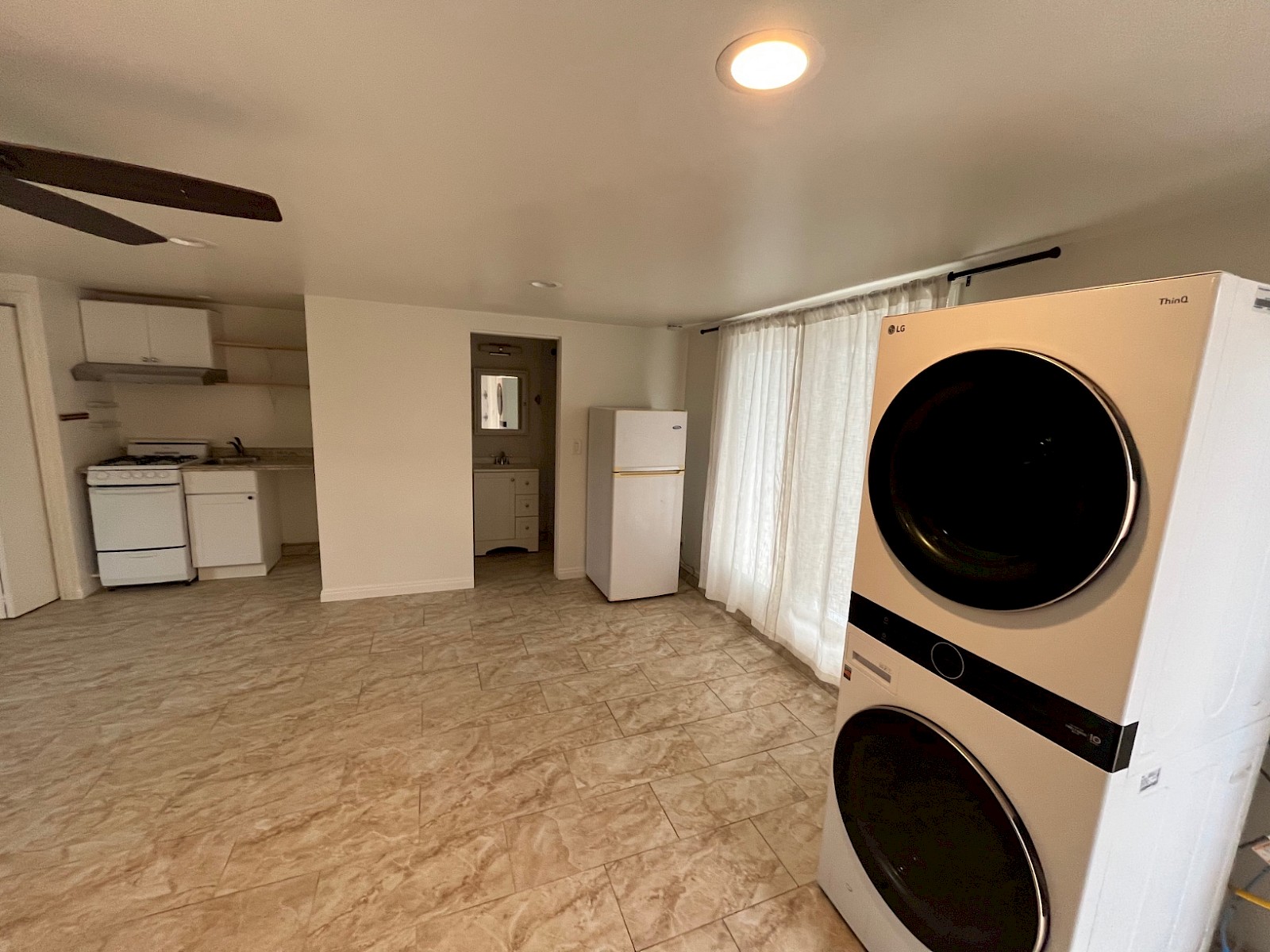 6883 Sabado Tarde unit is a large studio with a it's own laundry and full bathroom. Great for a person who wants privacy and space! The front door opens out onto a large private patio. This spacious studio has a large closet and full kitchen.