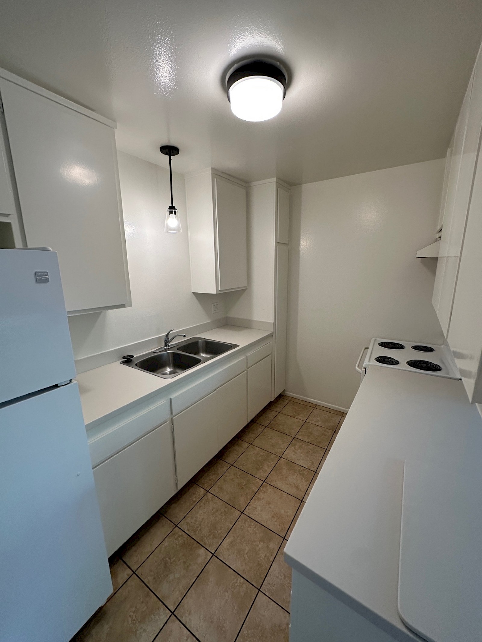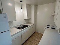 The recently updated kitchen includes new Corian counter tops, large sink, new electric range, and new full-sized refrigerator. The bathroom has a walk in closet, shower/tub combo, new counter tops and moisture sensing bath fan.